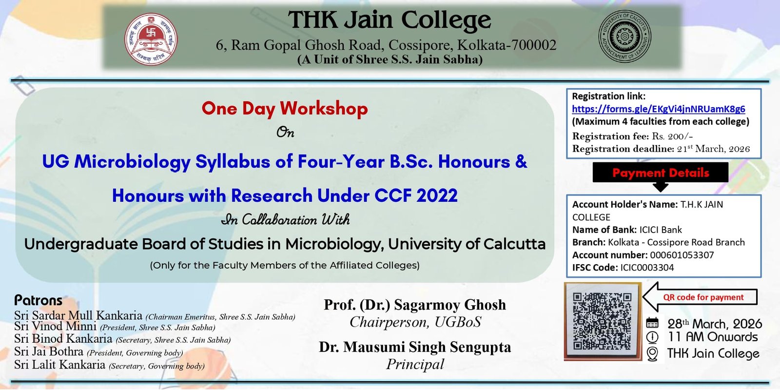 It is my pleasure to welcome you to our college website. Let me introduce you to Taradevi Harakh Chand Kankaria Jain College. A self-financed minority college affiliated to the University of Calcutta, THK Jain College was established in 2006 by Shree S.S. Jain Sabha. The college administration ...