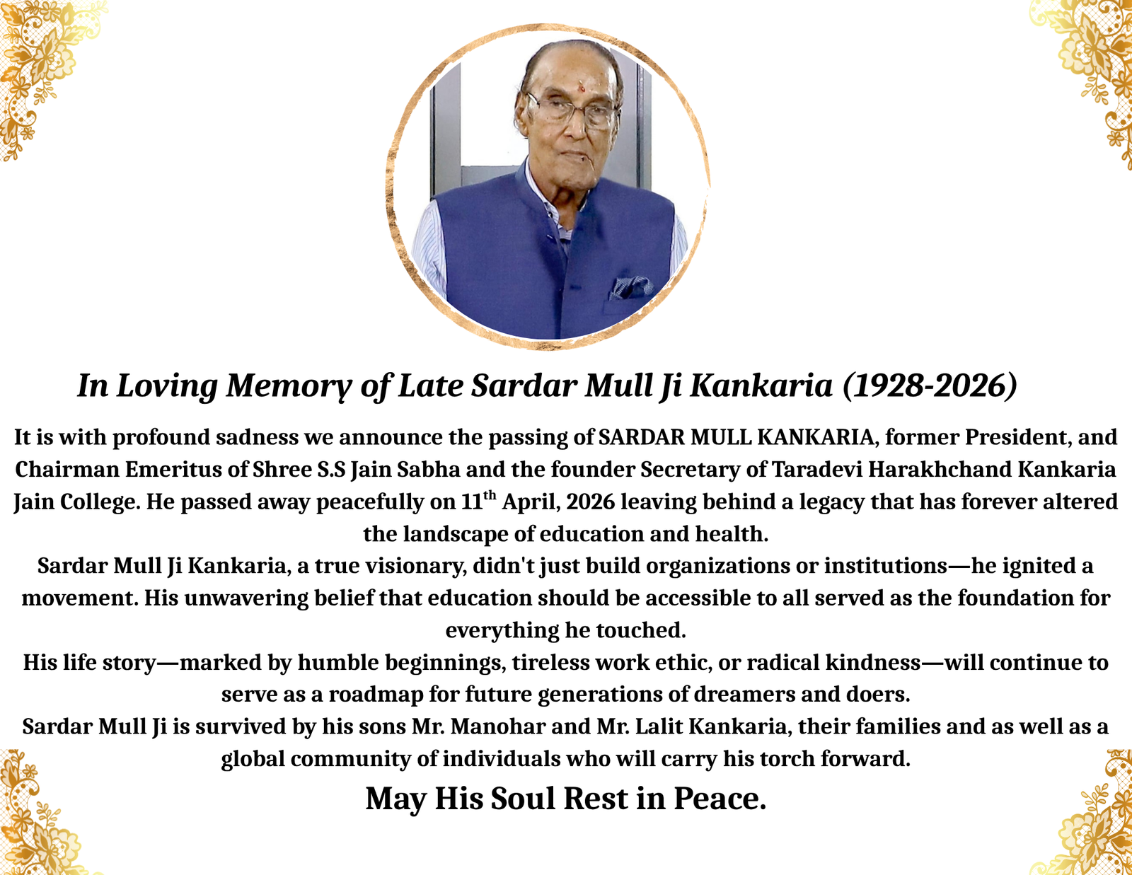 A Self-financed Govt. approved Minority Institution run under the auspices of Shree S.S. Jain Sabha